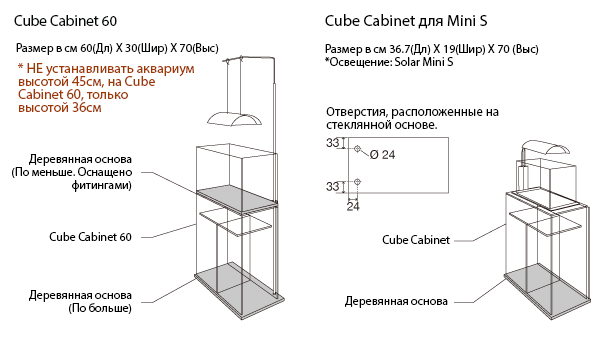Новые тумбы специально созданы для Cube Garden / Cube Glass: их размеры 36×22×26 и 30×30×30 см. Их элегантный прозрачный корпус, сделанный из того же стекла, что и аквариум Cube Garden подойдет к любому интерьеру комнаты. Дополнительно можно использовать деревянную доску-основание для лучшей устойчивости.