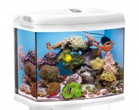 Комплексный набор для обустройства морского рифового аквариума. Профессиональное оборудование для запуска миниатюрного кораллового рифа, а также разведения небольших рыб и беспозвоночных обитающих в солёной воде. Aквариум ёмкостью 105 литров с дуговым передним стеклом. Уникальная крышка снабжена тремя флуоресцентными лампами T5 мощностью 24 W каждая и голубыми диодами LED, обеспечивает превосходное освещение аквариума (как в дневное так и в ночное время). Система интегрированных вентиляторов в крышке гарантирует эффективное удаление избытка тепла и сдерживает рост температуры воды в аквариуме, даже во время летней жары.