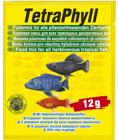 TetraPhyll Хлопья Идеальный корм для всех травоядных рыб в виде хлопьев с жизненно важными балластовыми веществами.