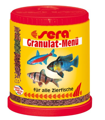 SERA гранулы-меню содержат четыре сорта высококачественного гранулированного корма для кормления всех видов аквариумных рыб, питающихся в средней и придонной части аквариума. Ежедневное кормление этим высококачественным кормом гарантирует здоровье и жизнеспособность ваших декоративных рыбок.SERA гранулы-меню содержат следующие сорта корма: «гранола», «овощной» корм, корм «сила» и «цветной» корм.