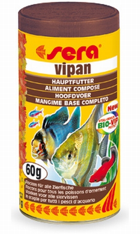 SERA VIPAN - основной хлопьевидный корм для всех видов декоративных рыб (крупные хлопья) 20л-4кг