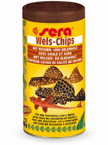 SERA WELS CHIPS - корм для лорикариевых сомов в виде пластинок долго не размокает, содержит натуральную древесину ольхи и ивы необходимую для пищеварения 250мл