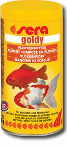 Корм в хлопьях для ежедневного кормления всех золотых рыбок в аквариумах и садовых прудахЗолотым рыбкам требуется меньше белков и больше просто перевариваемых углеводов, чем тропическим рыбкамsera goldy содержит спрулину и муку из пророщенной пшеницы, по этому совершенно подходит для кормления холодноводных рыб в аквариумах и прудахКормление рыб sera goldy осенью и ранешней весной крепит рыб перед спячкой (при зимовке в водоёме).