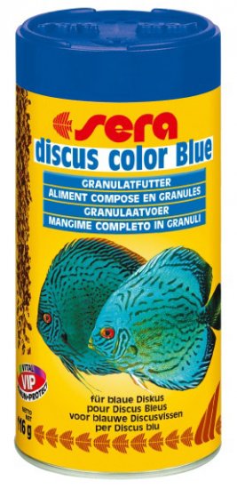 SERA DISKUS COLOR Blue – корм из креветочной муки и спирулины для синих и зеленых дискусов, а также для рыб с преобладающим синим окрасом 100мл