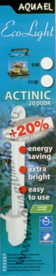 ACTINIC - для морских аквариумов, улучшают эффект <сияния> и цвета кораллов (9 и 11 W) - цветовая температура 20000 K.