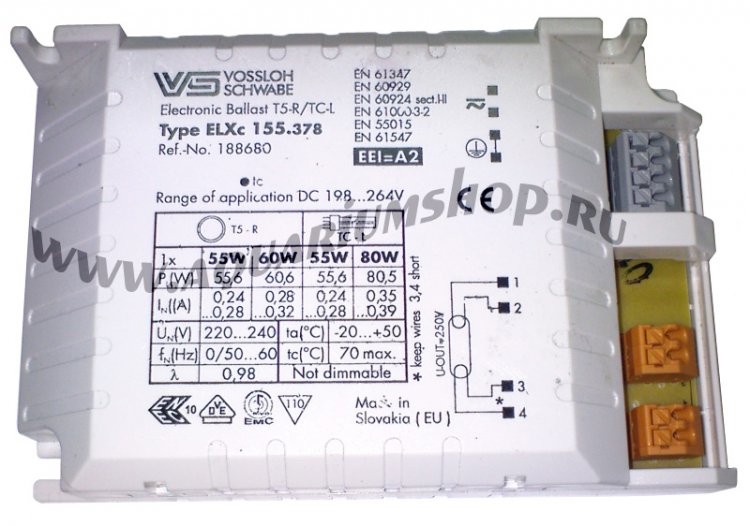 :: VS ELXc 155.378 ЭПРА для КЛЛ 1x55/80W (123x79x33)