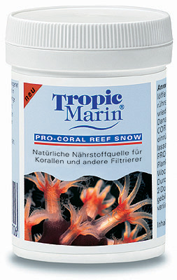Недавно морские ученые стали узнавать все больше окоралловом снеге, источнике питательных веществ в естественных коралловых рифах. Распад Tropic Marin® PRO-CORAL REEF SNOW в осмотической воде формирует густой раствор, который может быть совмещен с продукцией для питания, такой, как Tropic Marin LIPOVIT, PRO-CORAL ZOOTON и PRO-CORAL PHYTON, чтобы имитировать этот естественный источник питательных веществ.