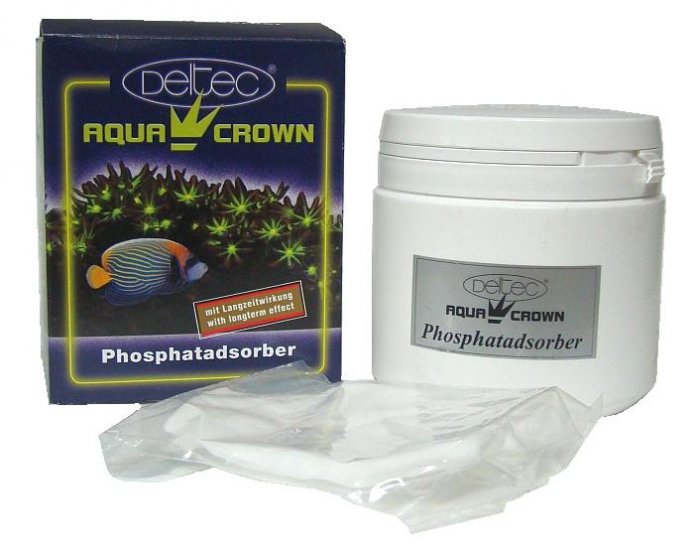 Для снижения содержания фосфатов на основаниии своих качеств отлично подходит адсорбирующее фосфаты средство AQUA CROWN Phosphatadsorber производства Deltec . При этом вместе с фосфатами адсорбируются другие нежелательные вещества, как например мышьяк, медь, силикат и хром. Способность сцепления при этом кроме прочего зависит и от уровня рН воды, температуры воды и других конкурирующих веществ, входящих в состав воды.