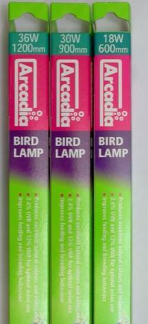 Исходя из этого, возникает потребность в специальных лампах для птиц. Фирмой Аркадия была разработана полноспектральная люминесцентная лампа, которая обеспечивает правильный уровень УЛЬТРАФИОЛЕТА для птиц и помогает передать естественный цвет их оперения.