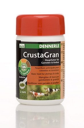 DENNERLE CrustaGran, granule size ca. 2 mm КрустаГран. 100 мл Основной корм для креветок и карликовых речных раков.Размер гранул: 2 мм Для полноценного, биологически гармоничного кормления 20 % водорослей: 10 % спирулина, хлорелла, дуналиелла, аскофиллум Устойчив к воздействию воды до 24 час – не портит воду