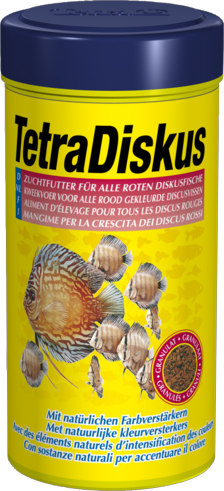- полноценный сбалансированный корм в виде гранул, специально разработан с учетом специфических потребностей дискусов: как молодняка, так и брачных пар