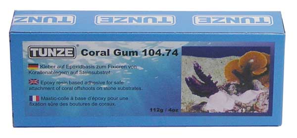 TUNZE Coral Gum 104.74 двухкомпонентный эпоксидный клей для фиксации камней и кораллов 112гКлей на эпоксидной основе для фиксации ответвлений кораллов на каменном субстрате. Красного цвета, напоминает известковые водоросли, специально предназначен для аквариумов с коралловыми рифами. Применяется также для склеивания стекла, керамики, дерева и различных видов пластика.Масса содержимого 112гСпособ примененияПеред применением основательно смочите рабочий инструмент и поддерживайте его во влажном состоянии в течение всей процедуры склейки. Расположите оба бруска один рядом с другим и отмерьте от каждого из них по куску одинаковой длины. Отрезайте куски от каждого из брусков по отдельности. После каждой операции промывайте нож водопроводной водой. Не следует прикасаться к оставшимся брускам. Основательно перемешайте оба куска на воздухе в течение примерно 5 минут. Как только окраска смешанной массы станет однородной и ее поверхность перестанет быть «мраморной», масса готова к применению. Расположите массу на любом участке и вставьте в неё кораллы вместе с их каменным субстратом. Разровняйте все переходы с помощью почвенного камня. Склеиваемые части не должны содержать органических загрязнений (жир, слизь, водоросли и т.п.). Установите кораллы вместе с их камнем в подготовленную ёмкость с аквариумной водой и дайте массе затвердеть в течение 4 - 6 часов при температуре 25-28°C.