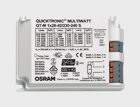 QUICKTRONIC MULTIWATT QT-M - универсальные ЭПРА для зажигания ламп из горячего состояния, способные работать с 17 различными типами ламп.