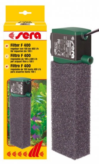 SERA внутренние фильтры F созданы на базе надежных SERA погружных помп. Они оборудованы фильтрующей губкой большого размера и сочетают в себе преимущества внутреннего фильтра, как такового и помпы для перегонки воды. Губка защищает мелких рыбок (например, мальков) от не попадания внутрь помпы в процессе ее работы. SERA внутренние фильтры F идеально подходят для совместной работы с SERA CO2-реактор (SERA CO2 reactor). Благодаря держателю с присосками они легко могут быть прикреплены к стеклу аквариума.Технические характеристики:F 700 регулируемый: максимум 650 л/час, максимальная высота подъема воды 95 см, 220-240 вольт/50 Гц, мощность 5 Вт.