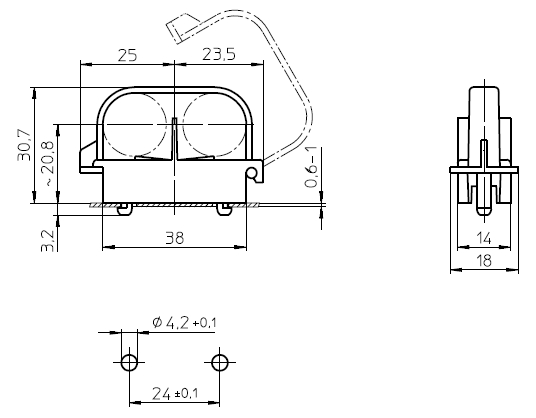 A.A.G. Держатель для КЛЛ верх.креп., защёлка, пласт., прозрачный для 441/V