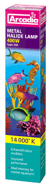 Лампы Arcadia Marine White с цветовой температурой 14000 К с очень хорошей цветопередачейЭти факторы делают ее идеальным выбором для серьезных морских аквариумов, с отличным уровнем света во всем аквариуме и необыкновенной ясностью для просмотра постоянно меняющихся морской средыЗначительная часть световой энергии сосредоточена в области между 400 и 480 nm, которая также оказывает помощь в развитии и росте кораллов и беспозвоночных