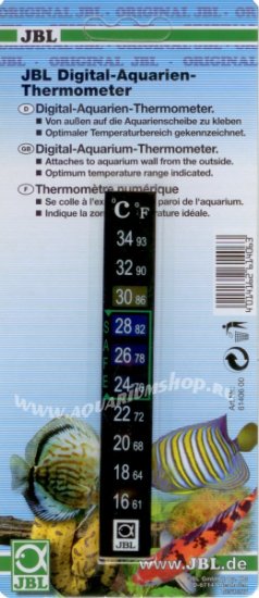 Цифровой термометр на клеевой основеПриклеивается к внешней стороне аквариумного стекла• Высокая точность измерений• Промаркирована оптимальная область температур