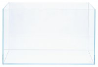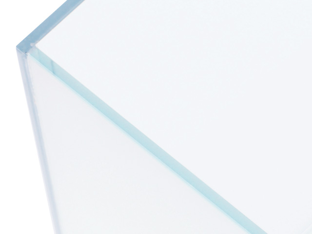 Заднее стекло изготовлено с применением пескоструйной технологии. Если поместить аквариум в хорошо освещённом месте, например на подоконнике, создаётся эффект затуманенности и можно не использовать задний фон. Другое креативное решение добавить подсветку в виде не мощной люм лампы вдоль задней стенки аквариума.