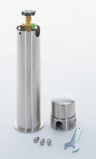 картриджам), подходящий для большого аквариума. Корпус из нержавеющей стали в вертикальном положении гарантирует безопасность баллонов СО2.