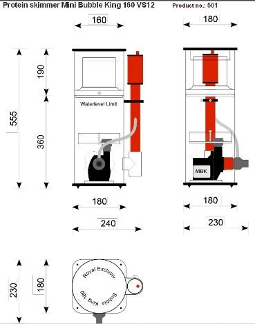 Royal Exclusiv Mini Bubble King 160 Флотатор - Скиммер внутрен д/акв. 200-500л 180x180x560мм 18вт