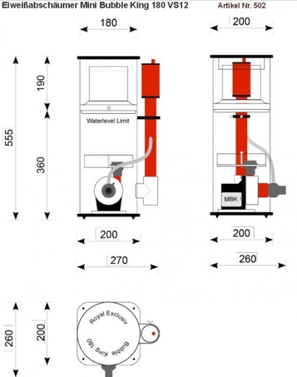 Royal Exclusiv Mini Bubble King 180 Флотатор - Скиммер внутрен д/акв. 400-750л 270x260x560мм 35вт