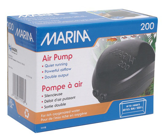 :: HAGEN Marina 200 Air Pump Компрессор двухканальный для аквариумов до 225л 2x110л/ч