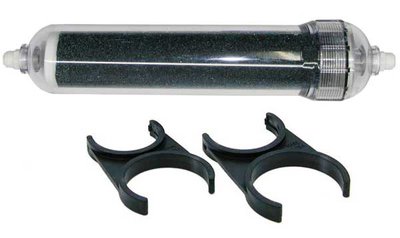 Этот дополнительный фильтр может быть установлен на водном выходе станции обратного осмоса в качестве увеличителя жесткости воды или силикатного фильтра. Емкость содержит два навинчивающихся колпачка с разъемными соединениями для шланга установки обратного осмоса и двумя клеммами для прямого подключения непосредственно к станции обратного осмоса. Особенно мы рекомендуем применение в качестве силикатного фильтра на водном выходе для устранения кремниевой кислоты. Таким образом можно избежать распространения в аквариумах диатомовых и сине-зеленых водорослей. В качестве среды используется смешанный ионообменник с изменяющейся окраской, № артикула 8550.501.