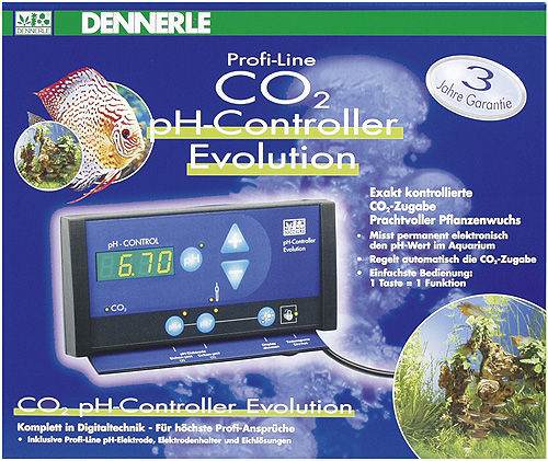 Новый pH-Controller Evolution от ДЕННЕРЛЕ измеряет благодаря электронной начинки значение pH в аквариумной воде и автоматически контролирует количество подаваемого в аквариум CO2 при помощи электромагнитного клапана.