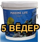 Marine Life salt (5 вёдер 20 кг) Соль для Морского Аквариума 3000л аквариумной водыСделано в России. Оптимально цена/качество!Производство продукции не отличается по технологии от иностранных аналогов. Для создания соли Marine Life используются химические элементы только наивысшего качества и квалификации (химически чистый), что обеспечивает отсутствие в продукции нитратов, фосфатов, силикатов и тяжелых металлов.Арт: mls20x5