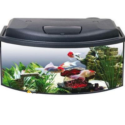 Аквариумный комплект с полным оснащением - освещением, терморегулятором и переливным фильтром (расположен в крышке). Аквариум стеклянный, дуговой, со всеми установленными необходимыми устройствами для содержания рыб.