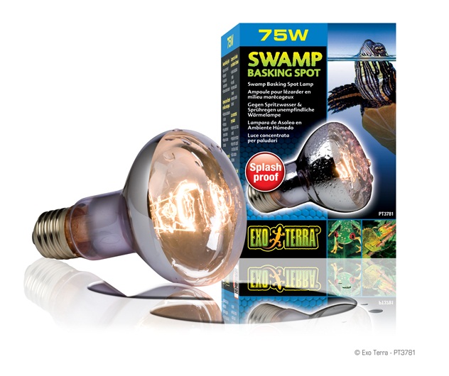 Exo-Terra Swamp Basking Spot - серия влагозащищенных ламп для обогрева акватеррариумов. Включает три модели различной мощности. Swamp Basking Spot предназначены для акватеррариумов и тропических террариумов с туманогенераторами, дождевальными установками, водопадаими и т.д. Туман, брызги и повышенная влажность не повредят этой лампе. Лампа Swamp Basking Spot обладает высоким индексом цветопередачи. Это значит, что при ее свете окраска животных будет выглядеть максимально естественно и насыщено.