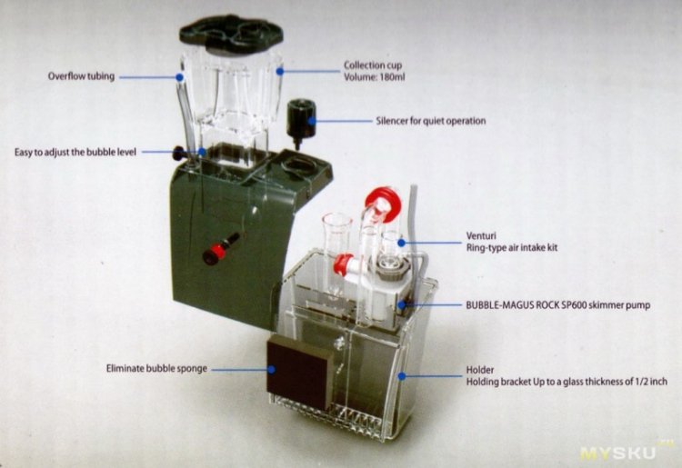 Маленький производительный Скиммер для небольших аквариумов. Простая регулировка и настройка. Особенность - игольчатый ротор, что является лучшим решением в Скиммерах.