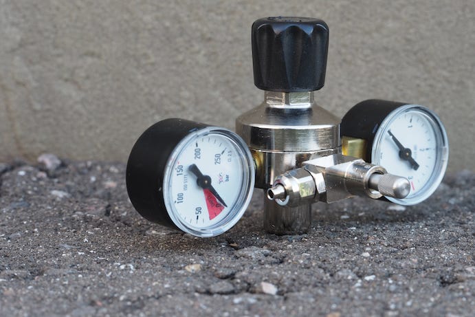 AQUAMARINE.LAND редуктор СО2 профессиональный для одноразовых баллонов под резьбу M10X1, с двумя манометрами рабочего и давления в баллоне, тонкой регулировкой под трубку 4/6 мм, со страховачным клапаном.