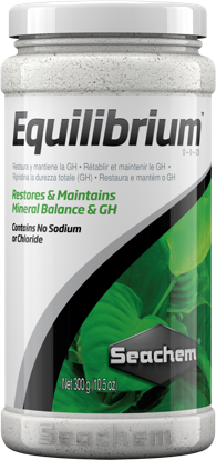 SEACHEM Equilibrium 300 гр важнейшие минералы для поддержания и восстановления общей жесткости GH не содержит Хлор (Cl-) и Натрий (Na) идеально для Осмоса / RO или Дионизирующий очистки / DI Equilibrium – специально разработан для идеального минерального баланса в растительном аквариуме. Equilibrium не содержит Хлор (Cl-) и Натрий (Na), которые могут накапливаться, оказывая негативное влияние на растения и рыб. Идеально подходит для приготовления аквариумной воды из очищенной с помощью RO / Осмоса или DI / Дионизирующих наполнителей. Повышает уровень важнейших электролитов поддерживающих общую GH. Основные плюсы при использовании Equilibrium:- идеальный баланс минералов для аквариумных растений- не содержит Хлор (Cl-) и Натрий (Na)- безопасен для всех в аквариумеДозировка одной ложки 16 гр добавляет 1 meq/L (3 dH) для 80 литров очищенной воды (DI или RO). Рекомендуется растворять в 1л воды и затем добавлять в общий объём. Вода может побелеть на 15-30 минут в период полного растворения. Когда планируете добавляеть Equilibrium в неподготовленную воду с помощью RO или DI, используйте тесты до и после, чтобы избежать передозировки. Если со временем Equilibrium уплотнится, то это не скажется на его свойствах. Оригинальный состав:Soluble Potash (K20) 23.0%Calcium (Ca) 8.06%Magnesium (Mg) 2.41%Iron (Fe) 0.11%Manganese (Mn) 0.06%