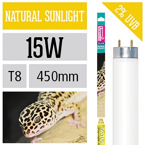 Arcadia Reptile 15W D3 Natural Sunlight 2% UV-B / 10% UV-A Люминесцентная лампа Природный Солнечный свет для Рептилий и Членистоногих Т8 15Вт 45 см диам 26мм