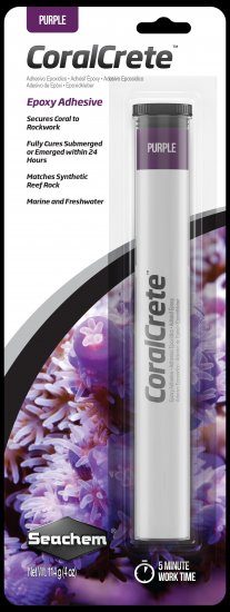 Seachem CoralCrete ™ - это двухкомпонентный эпоксидный клей, который можно использовать для крепления кораллов к камням или плашкам. Seachem CoralCrete ™ застывает в течение пяти минут. CoralCrete ™ безопасен для обитателей аквариума при использовании по назначению.