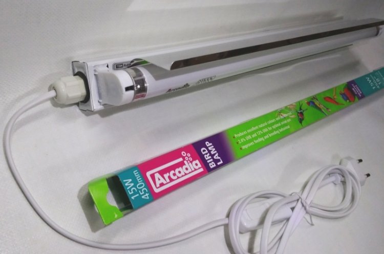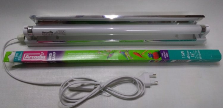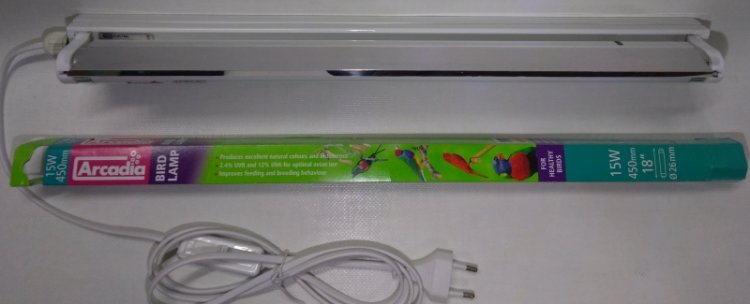 Специальный Комплект Светильника Для Птиц:- ЭПРА от Европейского производителя (свет без мерцания)- Отражатель Arcadia для лампы 15Вт Arcadia Bird Lamp(усиленный, направленный и рассеянный свет)- Arcadia Bird Lamp FB15 15Вт 45см G13 D26мм 5600K 2,4%UVB 12%UVA люм. лампа д/птиц
