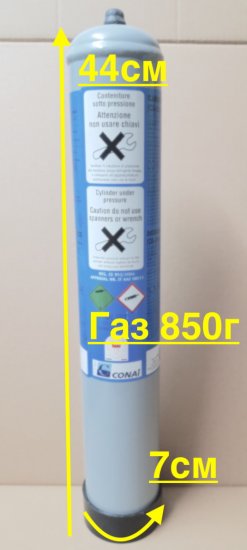 Одноразовый сменный баллон 1,14л с СО2 газ 850г для кулеров и пурифайеров размер 7 х 7 х 44 см, резьба M11X1