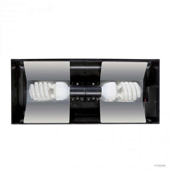 - Подходит для двух компактных флуоресцентных ламп Exo Terra, или ламп накаливания (максимально 26Вт).